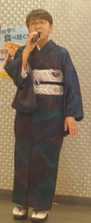 お出掛けのときは着物を着られることが多いとか・・・着物姿が板についています。 女性の歌であれ、男性の歌であれ、ノーマルキーで唄ってくれました。