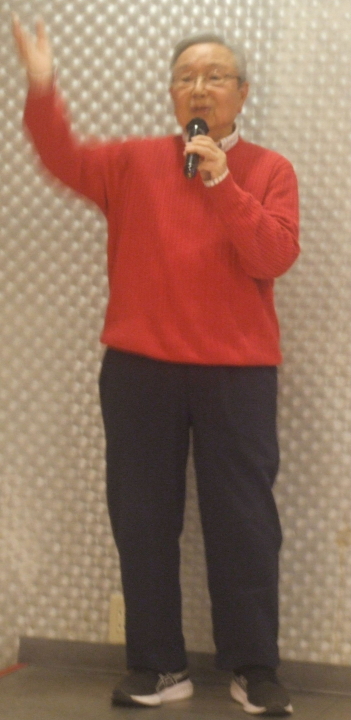 詩吟で鍛えた声量で唱歌から選曲はいずれも歌唱力のある伊藤久男、藤山一郎、五木ひろし、ちあきなおみなどの代表曲です。例会の冒頭で、素敵な吟詠を聞かせてくれました。。